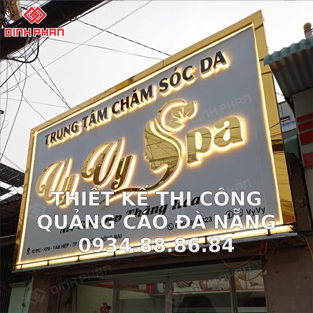 Khi bước vào không gian của Spa, ánh sáng từ bảng hiệu nổi tỏa ra như một lời mời dành cho khách hàng. Bảng hiệu này không chỉ là biểu tượng của dịch vụ chăm sóc sức khỏe và sắc đẹp, mà còn là một tuyên ngôn về sự sang trọng và chuyên nghiệp. Với chất liệu INOX mạ vàng, bảng hiệu không chỉ đơn thuần là một phương tiện quảng cáo mà còn là một tác phẩm nghệ thuật đích thực.